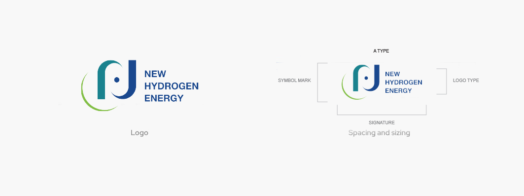 로고와 주변 요소와의 명확한 구분을 위해 NEWHYDROGEN의 ‘G’위 가로 폭과 동일한 크기의 여백을 로고타입의 상하좌우에 확보합니다.
